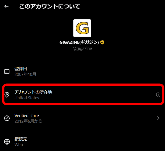 When checking the 'About this account' feature on GIGAZINE's X account , the account's location was listed as 'United States.' X acknowledged the issue and said, ' We expect to resolve some of the issues by Tuesday .'