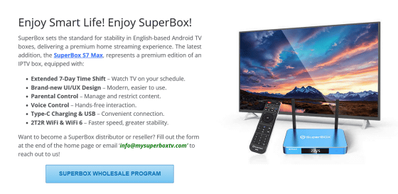 The product Krebs is taking issue with is called ' Superbox .' The official Superbox page boasts 7-day time-shift playback and voice control, and at first glance it appears to be a regular Android TV device.