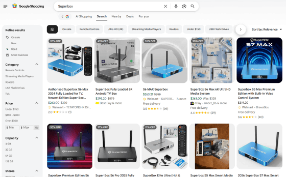 According to Krebs, Superbox isn't running a large-scale advertising campaign, but rather is conducting small-scale marketing using TikTok influencers, etc. Searching for Superbox on Google Shopping reveals that it's available at major online stores like Walmart and Best Buy.