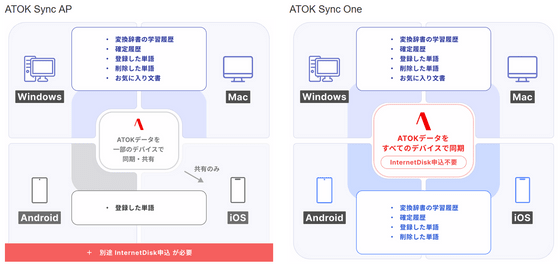 In addition, the service that synchronizes user data, 'ATOK Sync AP,' will be renewed to a service called 'ATOK Sync One' from June 2026. Data will be automatically transferred.