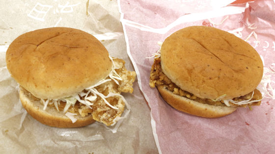 Both burgers are sandwiched between buns filled with Tatsuta-age and shredded cabbage. When you compare them, they seem to use completely different flavors of Tatsuta-age, but there is no difference in the flavor of the batter itself, so it seems to be just individual differences.