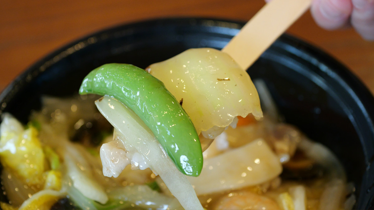 I tried the 'Chinese rice bowl' from Hoka Hoka Tei, which even cooking expert Ryuji highly recommends, as it contains half a day's worth of vegetables.