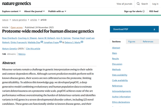 On November 24, 2025, local time, a research team at Harvard Medical School published a paper in the academic journal Nature Genetics about 'popEVE,' an AI model for diagnosing rare genetic diseases. By calibrating the severity of mutations across the entire proteome , popEVE successfully identified 123 new candidate genes for developmental disorders.