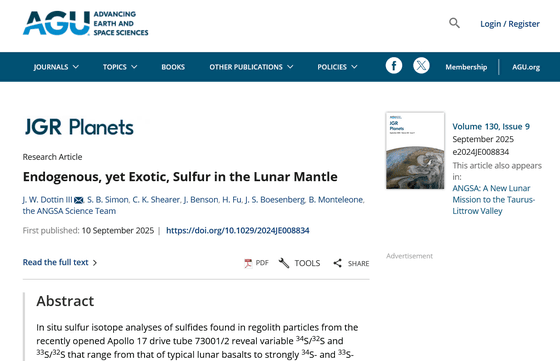 The analysis suggests two intriguing possibilities. First, sulfur, which was previously thought to have been acquired from the mantles of terrestrial planets, could have been formed on the Moon itself. The Moon is thought to have been covered by a magma ocean when it was first formed. As this ocean cooled and crystallized, sulfur may have interacted with ultraviolet light in the atmosphere, causing isotopes to change.