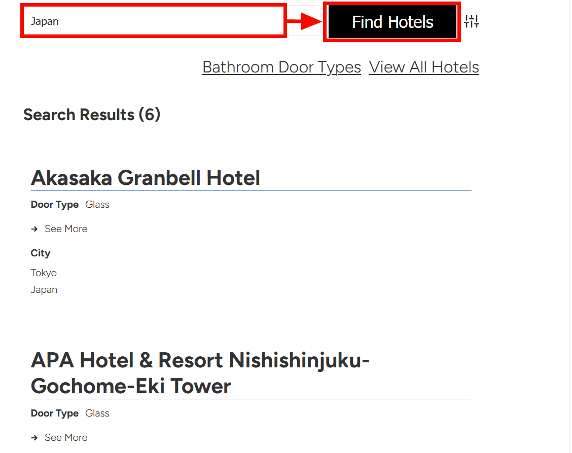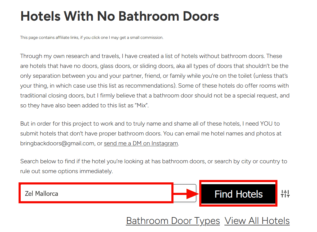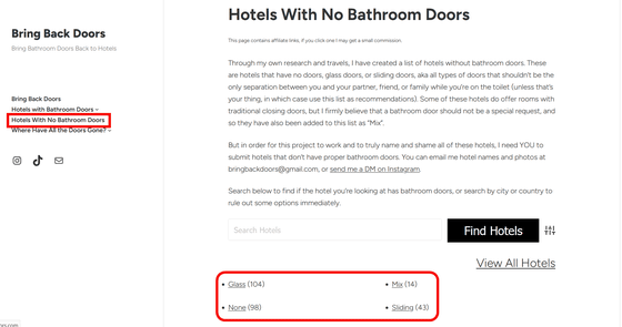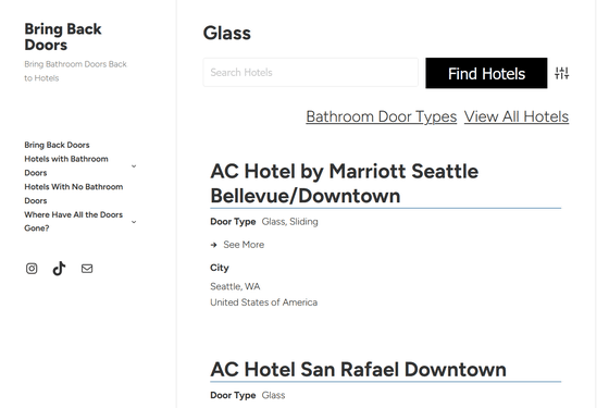 If you want to avoid hotels without proper doors, visit Bring Back Doors, enter the name of the hotel you're considering, and click 'Find Hotels.'