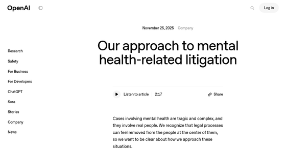 OpenAI sued over ChatGPT's alleged role in teenage suicide, OpenAI admits ChatGPT's safety measures don't work for long conversations - GIGAZINE