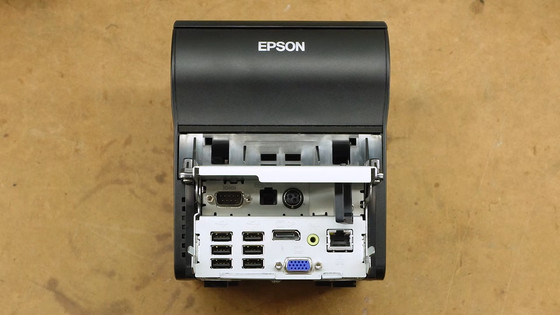 The TM-T88V-DT is a special product that combines a regular receipt printer with a PC equipped with an Intel Atom processor, a 500GB HDD, and 4GB of memory.