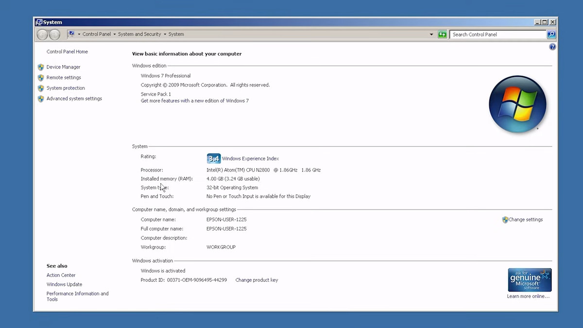 Because Intel only released graphics drivers for the Intel Atom chipset for Windows 7 32-bit, reverting to Windows 7 64-bit failed, forcing me to reinstall Windows 7 32-bit.