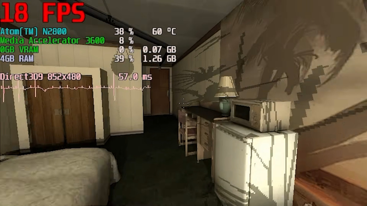 However, due to the lack of proper drivers for the PowerVR-based integrated graphics, performance is unplayable: when running 'Half-Life,' frame rates were a staggering 2-7 FPS.
