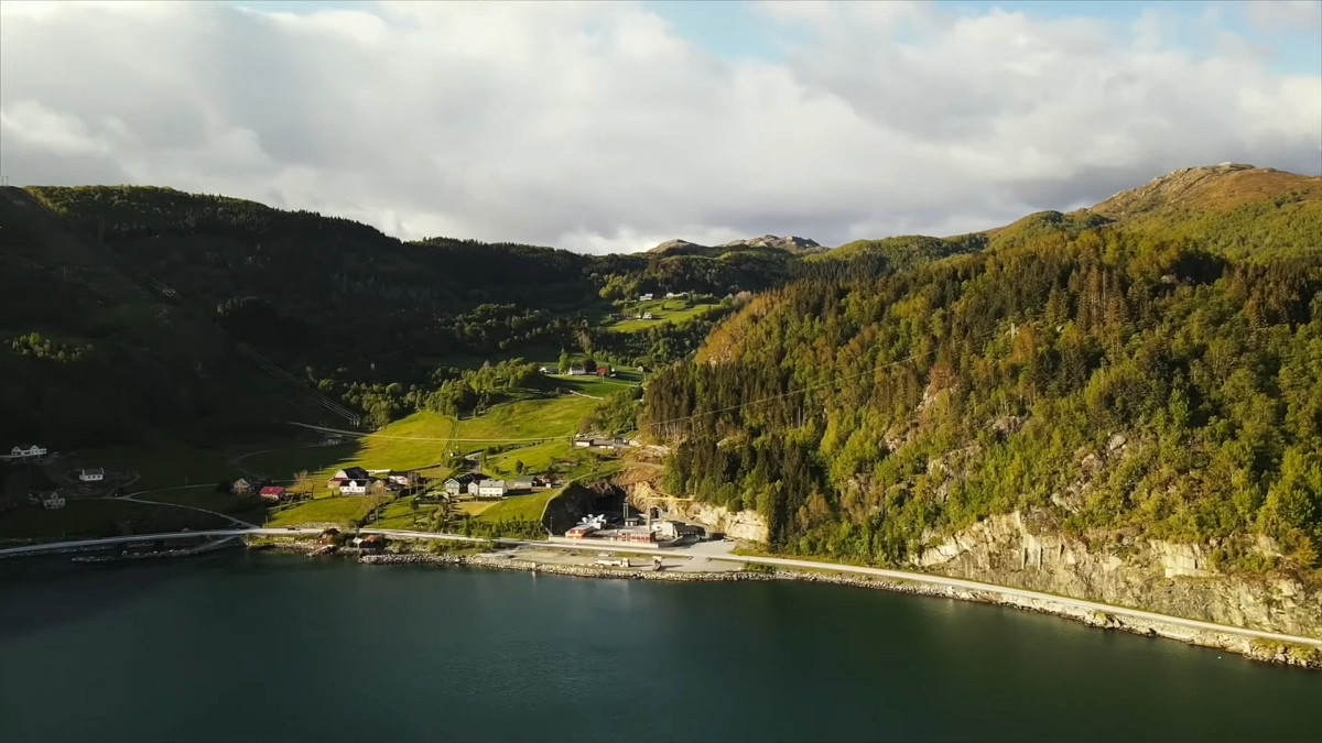 Olivia is installed in the Lefdal mine data center in northern Norway. Here's a bird's-eye view of the area around the Lefdal mine data center. From the outside, it doesn't look like there's a data center there.