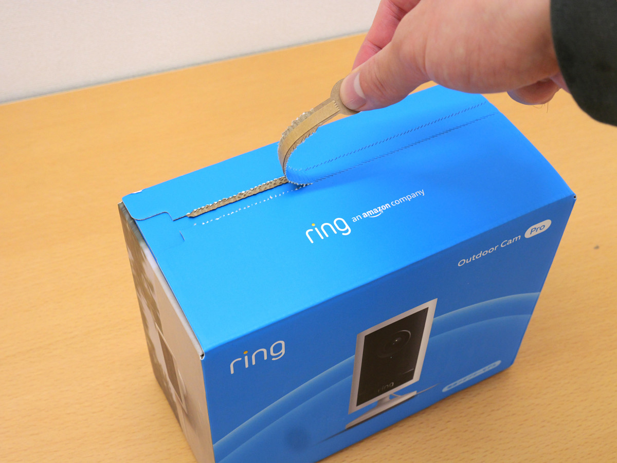 Like the Ring Outdoor Cam Pro, the box can be opened by peeling off the top.