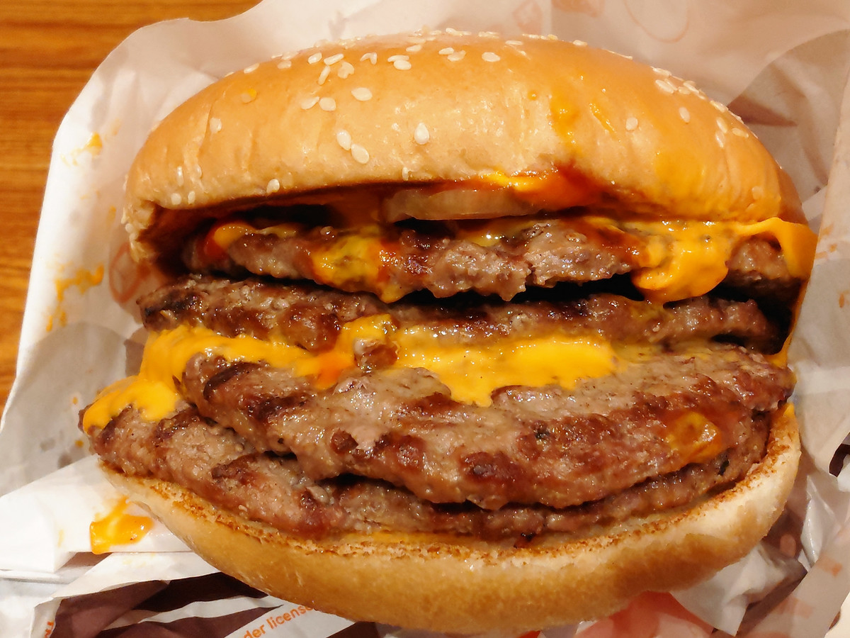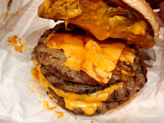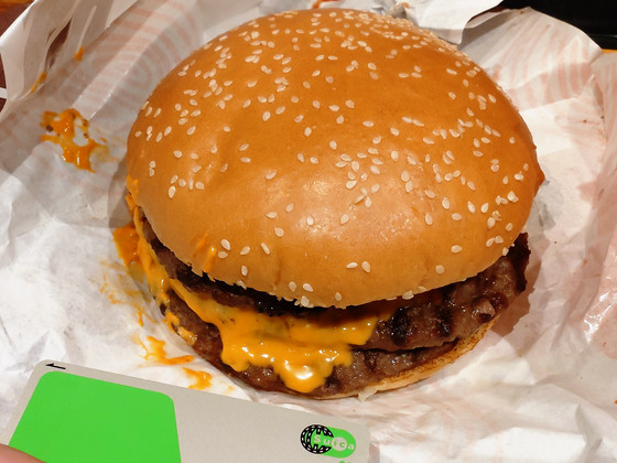 When I ordered the Garlic Garlic Burger, I thought, 'If you want to fully enjoy the garlic sauce, wouldn't one patty be better than two?' I was concerned about increasing the number of patties to four, but my fears were unfounded. The rich, special garlic sauce doesn't fight the flavor of the meat in the four patties, but rather pairs up like a tag team, rushing into my body as if to say, 'I'll fill you up.' It was a hamburger that seemed to drown in a rich, rich flavor.