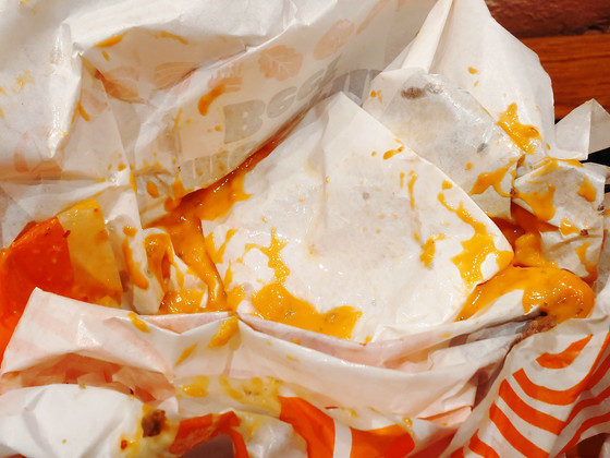 I sandwiched the burger nicely in the wrapper, and ate it while wiping up the sauce that was overflowing from the burger, and the wrapper looked like this after I finished eating. I think you can get a sense of how 'rich it is, so rich you'll drown in it.'