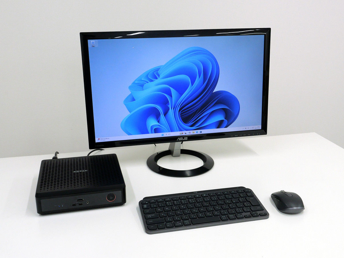 When you connect it to a display, keyboard, etc. and start up Windows, it looks like this. It's compact and equipped with a GeForce RTX 5060 Ti.