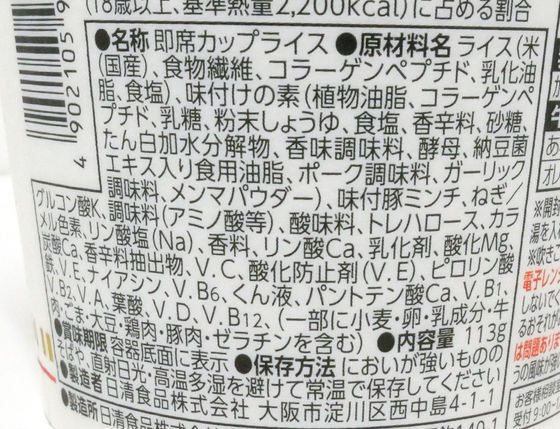 The ingredients include rice, dietary fiber, powdered soy sauce, pork seasoning, seasoned minced pork, green onions, etc. It also contains many vitamins.