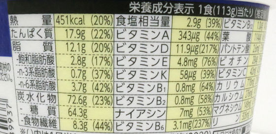 The calorie count is 451 kcal per serving. Other detailed values such as fat and vitamin content are also listed.