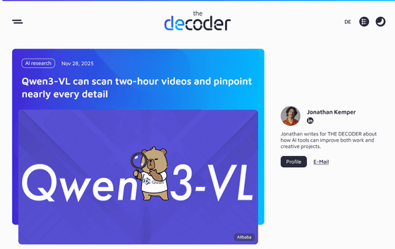 Alibaba's visual language AI model 'Qwen3-VL' can identify inserted frames in a two-hour video with 99.5% accuracy.