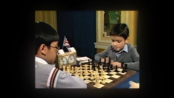 The video then goes back to when Hassabis was a chess prodigy. When the interviewer asks, 'What do you like about this game?', the young Hassabis responds, 'It's just a good thinking game.'