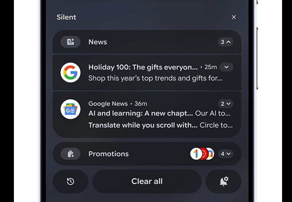 This feature automatically groups and mutes low-priority notifications such as promotions, news, and social media notifications.