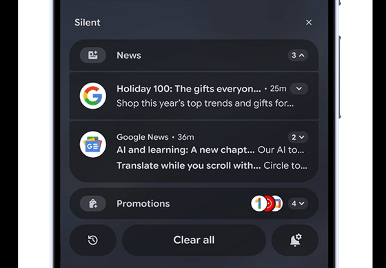 Messages from others will be displayed as usual, while news and promotions will be displayed together, as shown below.