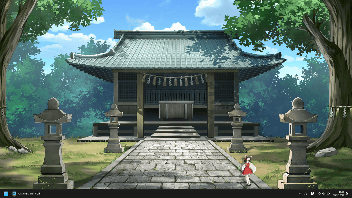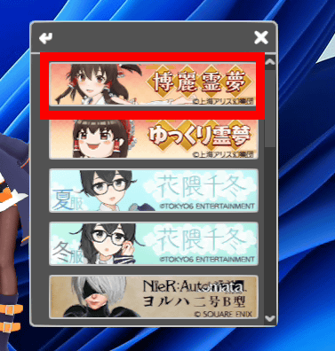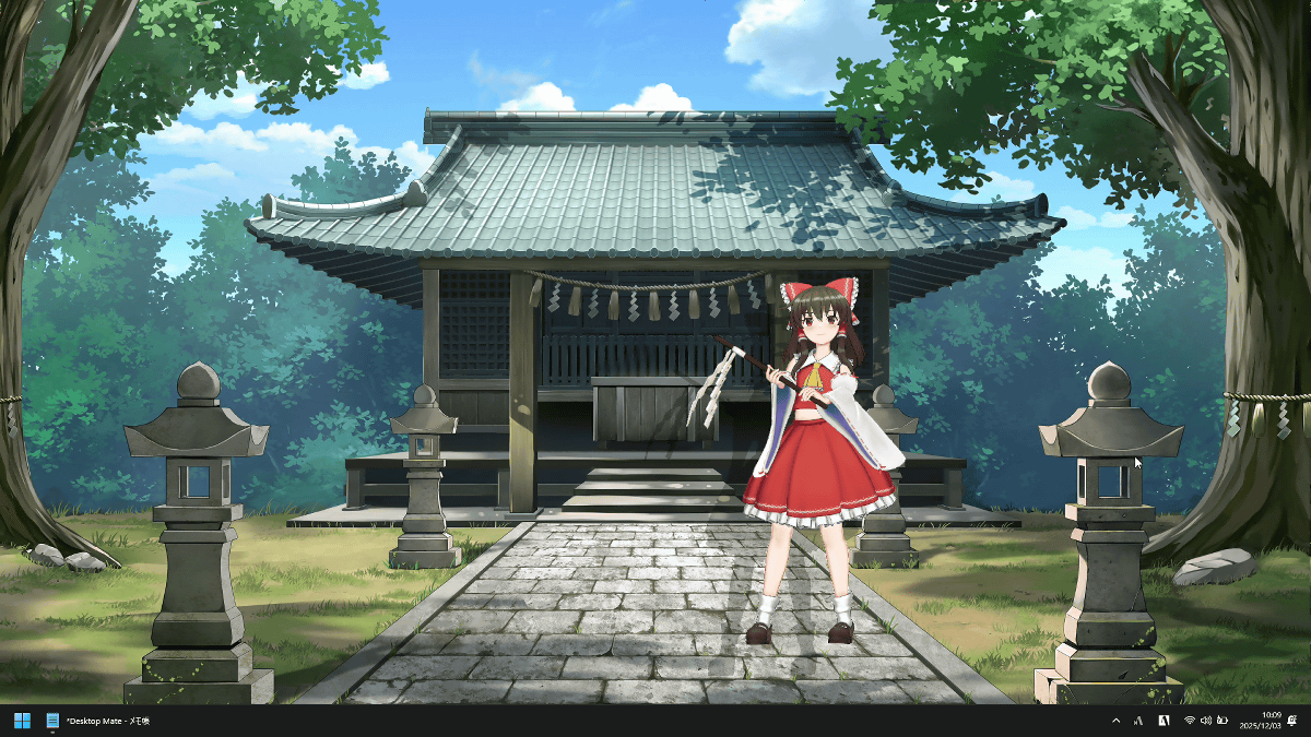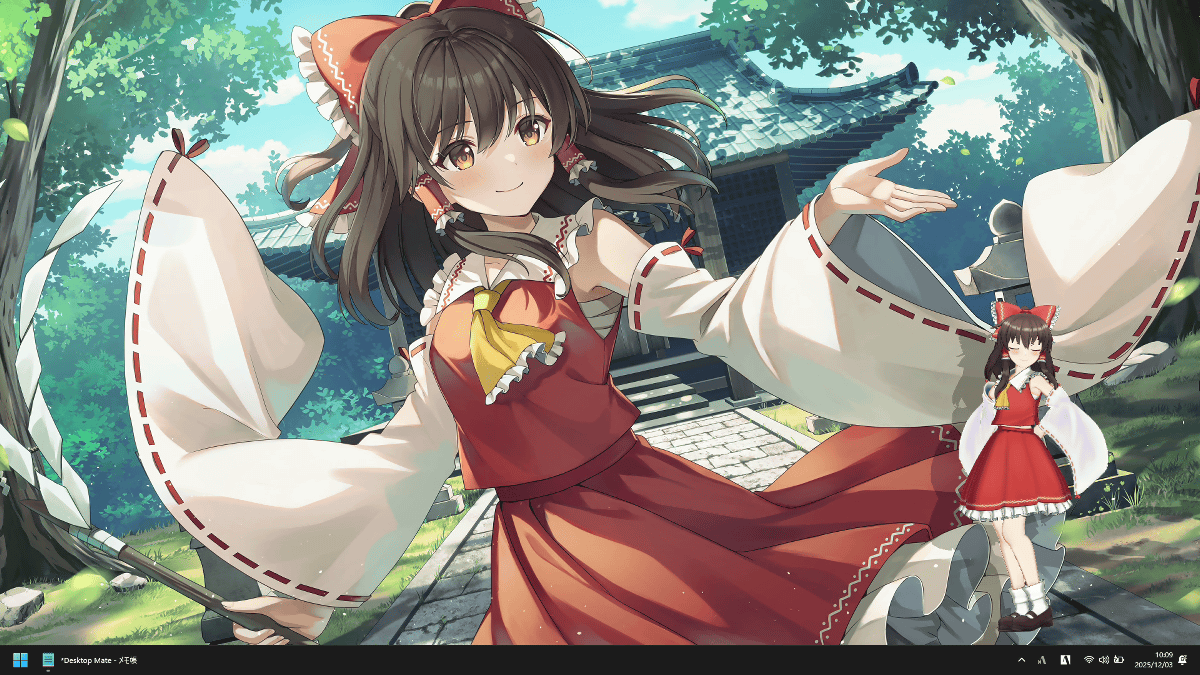 You can adjust Reimu's display position by dragging her. You can also place her on a window or taskbar, or hide her on either side of the screen. Additionally, voices and motions will play in response to clicks and other actions. You can see Reimu's actual movements and voice in the video below.