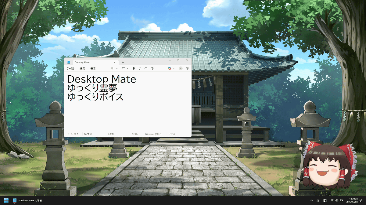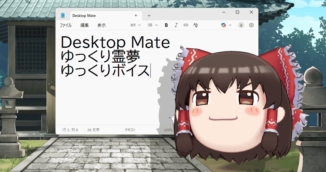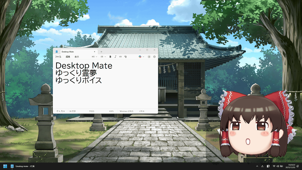 The DLC for Desktop Mate has been released, which lets you summon the talking Reimu Hakurei and Yukkuri Reimu to your desktop. I tried it out, featuring newly recorded voices by Sumire Uesaka and Yukkuri voices.