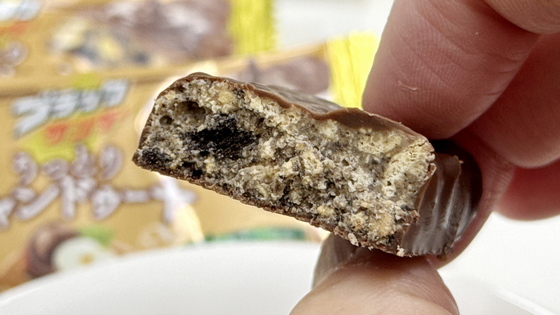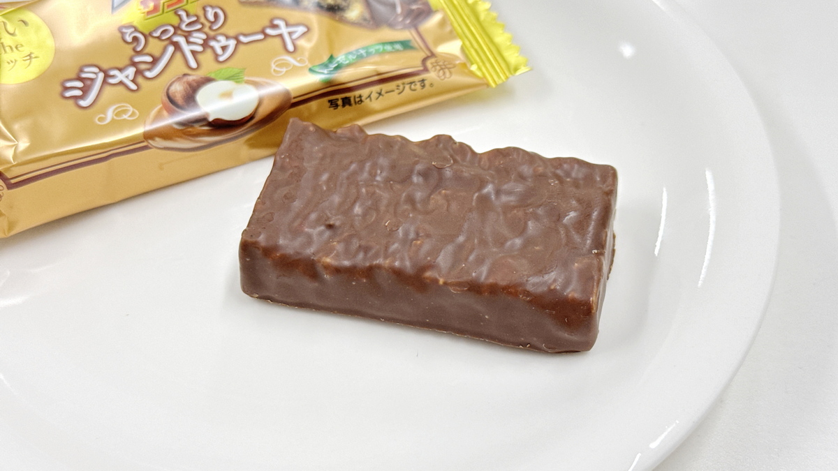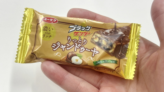 When I tried it, it had a moister texture than regular Black Thunder, with a less crunchy texture. As you can see from the cross-section, the cookies and nuts were not lumpy. The chocolate was smooth, but the strong aroma of the hazelnuts came out more strongly than the chocolate, giving it a luxurious taste despite being a mini chocolate bar.