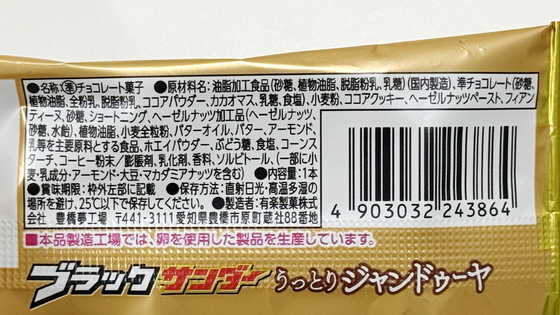 The individual packaging of Black Thunder Uttori Gianduja looks like this.