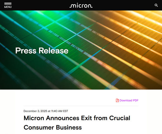 On December 3, 2025 local time, semiconductor giant Micron announced that it would be withdrawing from the consumer memory and storage business, which will result in the discontinuation of the company's ' Crucial ' brand.