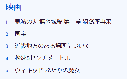 The movie 'Demon Slayer: Demon Slayer: Kimetsu no Yaiba - Mugenjo Arc Chapter 1: Akaza Returns' ranked first, with box office revenue reaching 38.3 billion yen, the highest in Japan's history. 'National Treasure,' the highest-grossing live-action Japanese film, also ranked second.