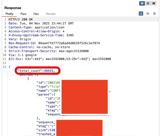 Further analysis uncovered an administrator token for the organization's cloud storage service, Box. This token allowed full access to confidential and customer information stored on Box. Shapiro searched for the phrase 'confidential,' resulting in 98,693 files.