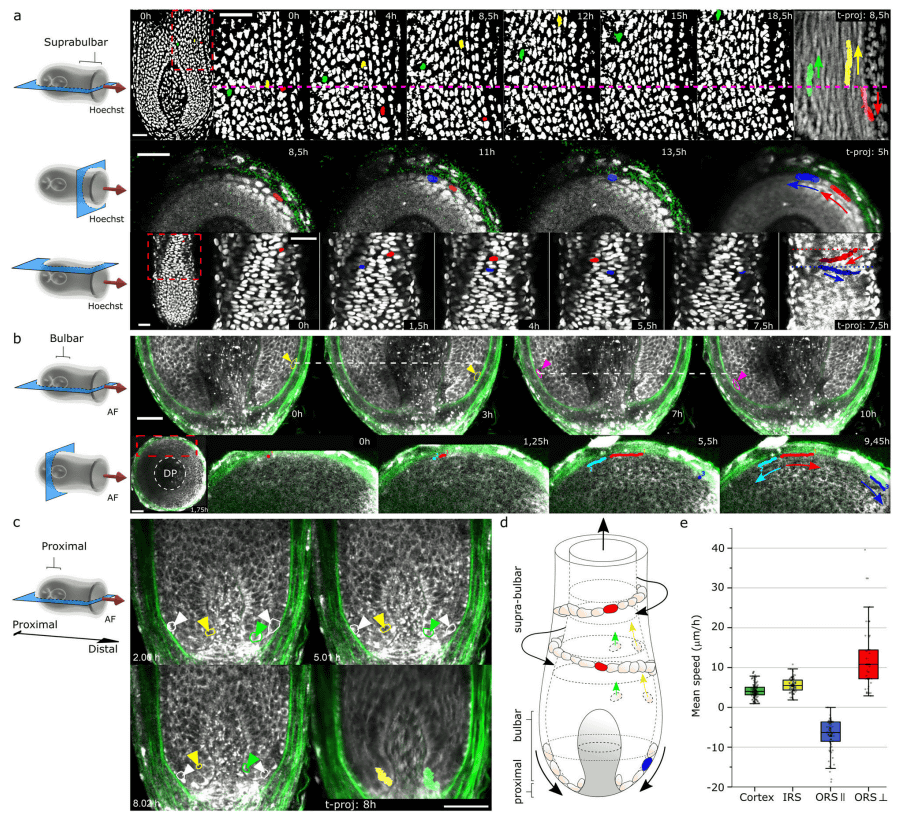 Mapping cell dynamics in human ex vivo hair follicles suggests pulling mechanism of hair growth | Nature Communications