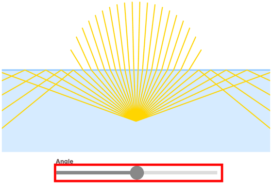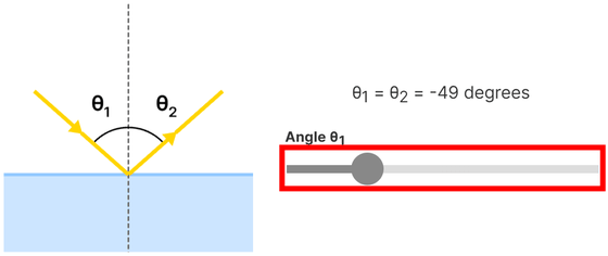 When a photon hits an object, it will either be reflected or refracted. According to the law of reflection, the angle of reflection is equal to the angle of incidence relative to the surface normal. Moving the bar will change the angle of reflection according to the angle of incidence.