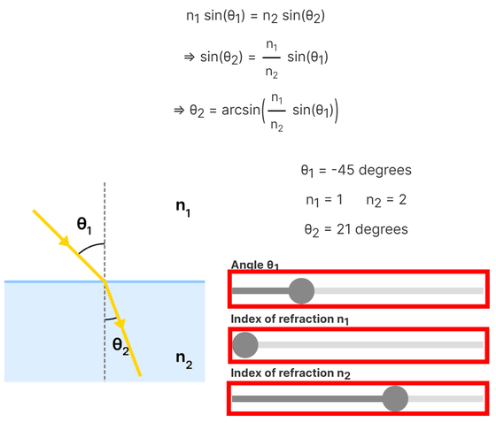The refraction angle is calculated from