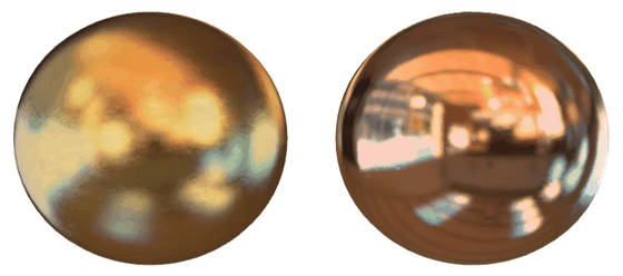 Changing the roughness of the metal surface changes the specular reflection, but diffuse reflection does not occur because photons other than the reflected light are absorbed.You can see that when you move the bar to change the surface roughness, the specular reflection changes but diffuse reflection does not occur.