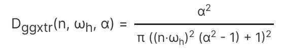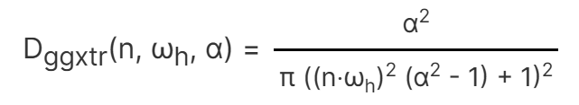 The normal distribution function is a function that approximately represents the number of tiny planes oriented to reflect light that is reflected from the incident direction ωi toward the outgoing direction ωo. In this example, we will use the Trowbridge-Reitz GGX function.