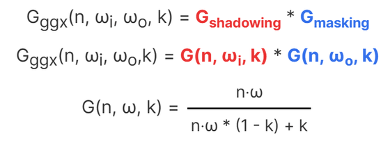These effects are approximated by geometric functions, here we use the Schlick-GGX geometric functions.