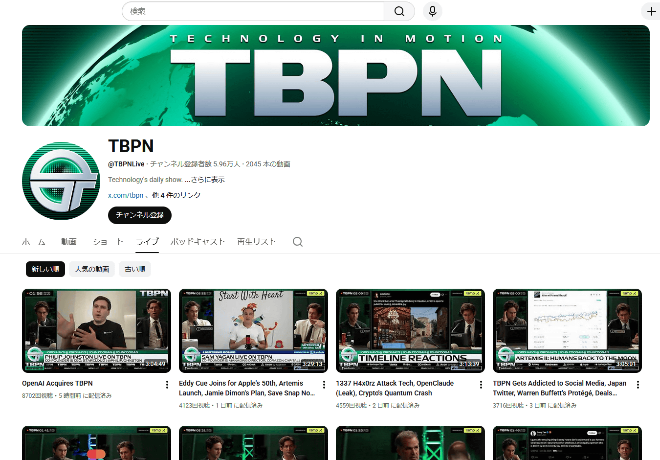 TBPN stands for 'Technology Business Programming Network,' and it distributes videos explaining technology-related news on platforms such as X , YouTube , and Apple Podcasts . TBPN broadcasts live on weekdays from 11:00 AM to 2:00 PM Pacific Time. As of the time of writing, it has 321,000 X followers and 59,500 YouTube subscribers.