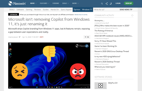 Microsoft originally stated that it would 'skillfully and centrally integrate AI where it is most effective' and 'reduce unnecessary Copilot launch points,' not that it would eliminate AI altogether. However, according to the technology news site Neowin, the announcement that Copilot, which was included in all tools, would be removed has led to dissatisfaction among some users who had hoped that 'unnecessary AI impositions would disappear.' Complaints such as 'I feel deceived that they are trying to completely eliminate AI integration features from Windows 11' have been posted on Neowin's forums and other places.