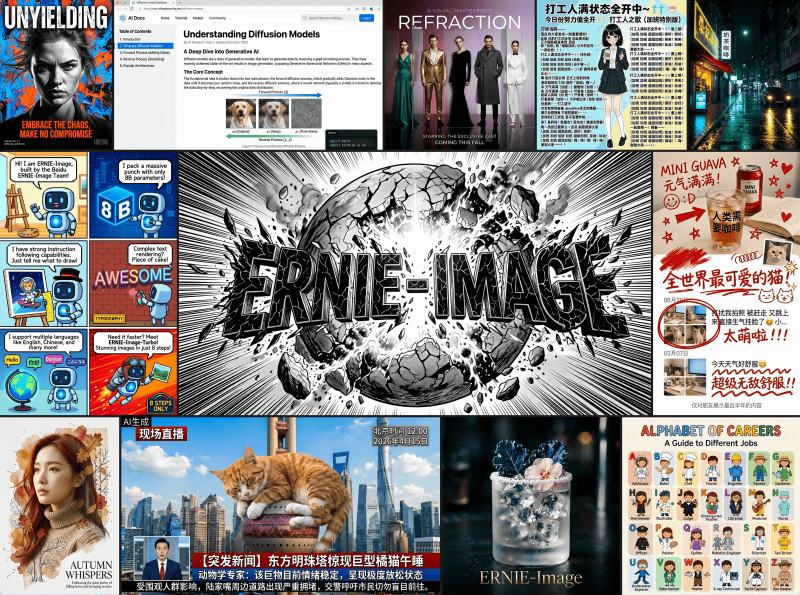 ERNIE-Image is a DiT model with 8 billion parameters that can generate high-quality images based on text prompts. ERNIE-Image-Turbo is a model that applies reinforcement learning to ERNIE-Image, reducing the number of generation steps from 50 to 8.