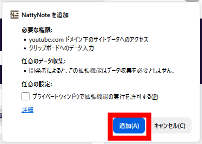 確認のポップアップが表示されるので「追加」をクリックします。