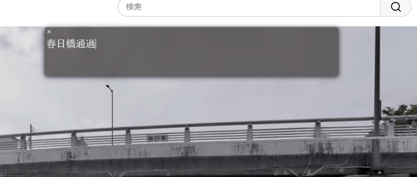 今回は「マチ★アソビ vol.28」で橋の下美術館での展望を記録した以下のムービーで試してみました。このムービーではいくつもの橋をくぐりますが、どのタイミングでどの橋をくぐるのかというタイムスタンプは設定していません。