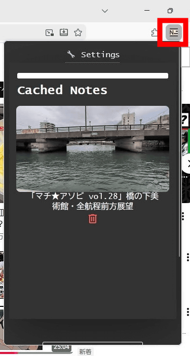 なお、メモの内容はローカルに保存されており、拡張機能のアイコンをクリックするとYouTubeのアドレスごとにタイムスタンプの記録がまとめられていました。FireFoxを閉じてしまっても、メモは内部に記録されています。