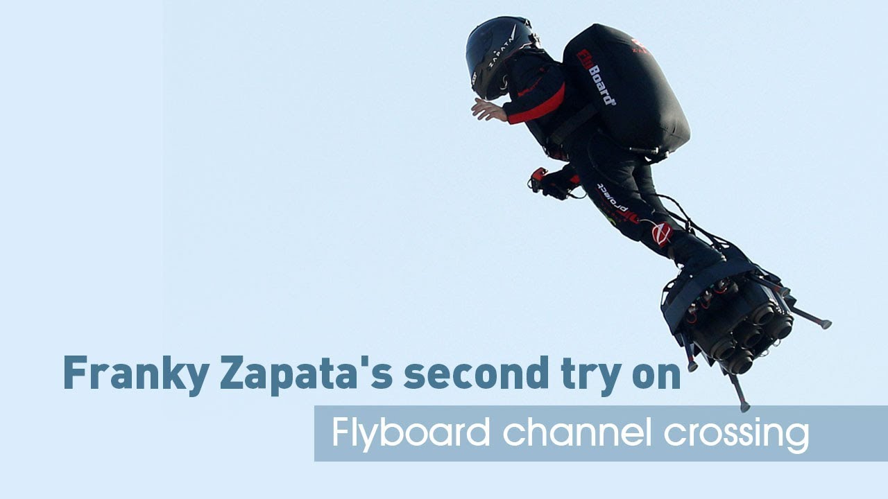 飛行機が初めてドーバー海峡を横断してちょうど110年となる2019年7月25日に、ザパタ氏はフライボードによるドーバー海峡横断にチャレンジしました。しかし、ザパタ氏が燃料補給のために船に着陸しようとしたところ、海峡を吹く強い風にあおられ、バランスを崩して失敗。2019年8月4日の朝に2度目のチャレンジを行い、見事成功しました。