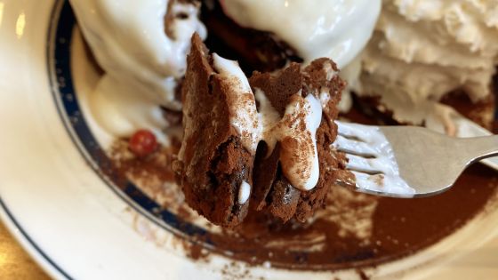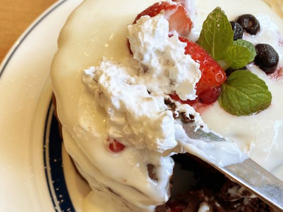 濃厚ミルククリームがほろ苦いショコラパンケーキにたっぷりかかった期間限定「クリスマスショコラショートパンケーキ」をEggs’n Thingsで食べてみた