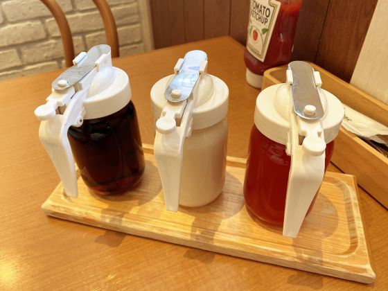 テーブルにはメープルシロップ、グアバ、ココナッツミルクのソースが常備されており、お好みのトッピングが可能となっています。