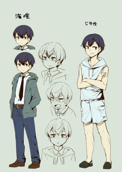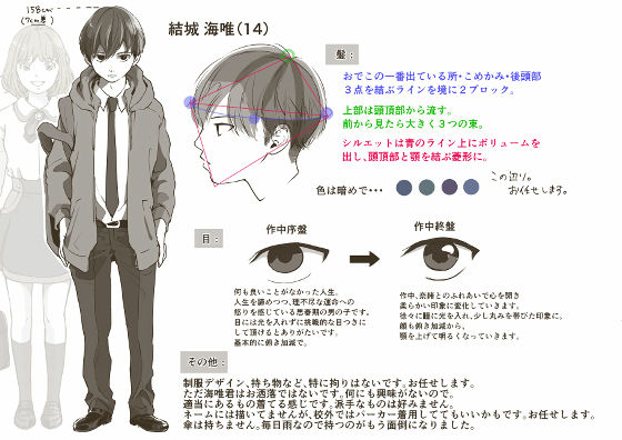 作画担当による着彩デザイン。明るめのナオの印象と比べ、カイは全体的にトーンダウンした印象です。