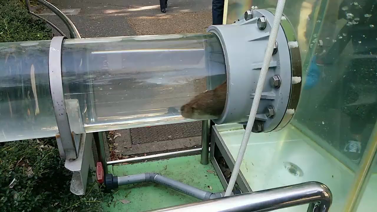 チューブの中をローリングして泳ぐユーラシアカワウソ - YouTube