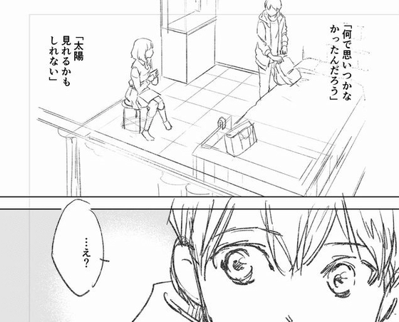 いくつも試した「太陽を見る」ためのアイデア。どれも結局うまくはいかず、半ば諦めていたさなか、ナオが最後の可能性を思いつきます。