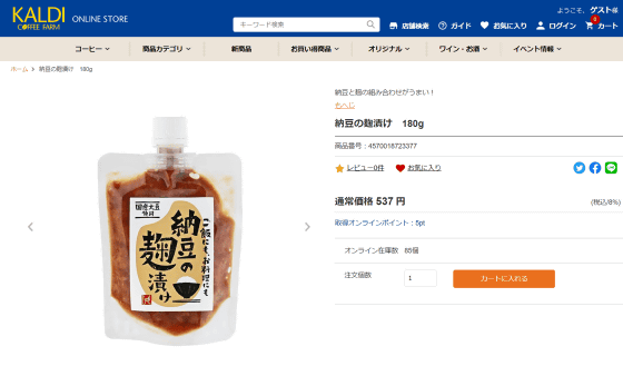 納豆の麹漬け 180g - カルディコーヒーファーム オンラインストア